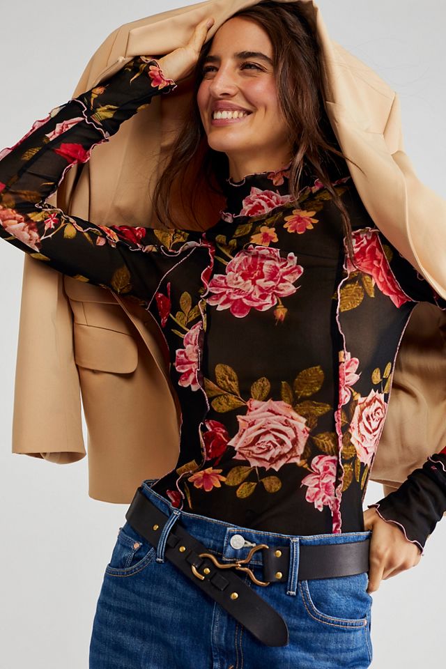 Product id: Patterned online mesh top