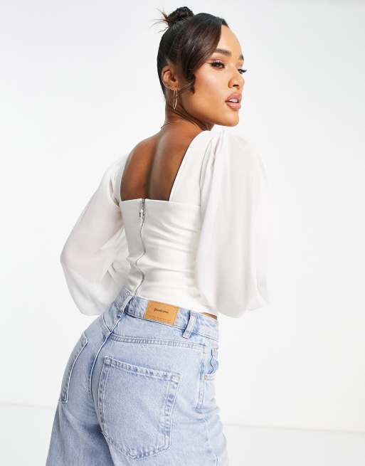 Product id: White top online with sheer sleeves
