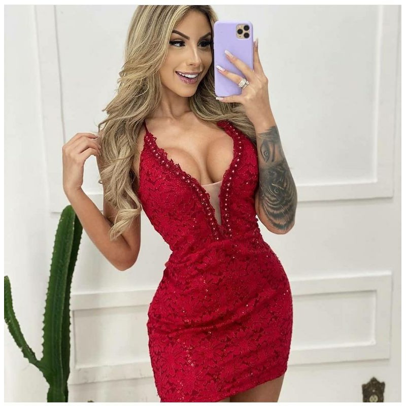 Product id: Vestido vermelho online curto com renda