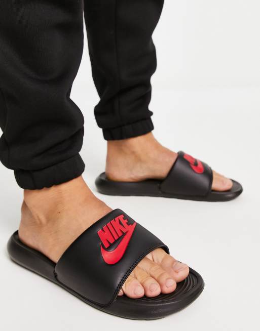 Product id: Black and online red slides nike